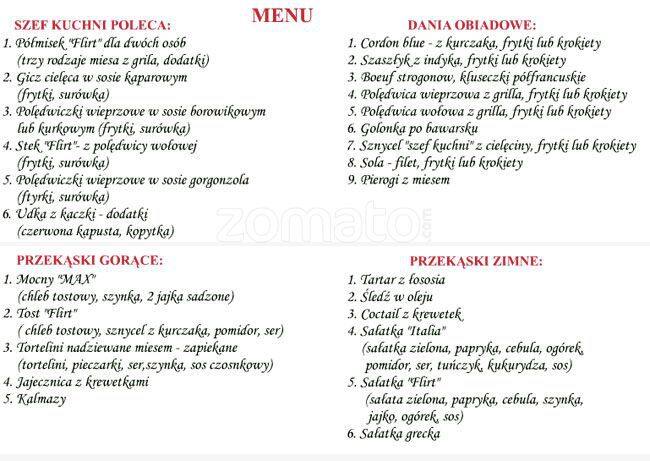Посмотрите меню в отношении flirt café bar.the menu includes and menu.